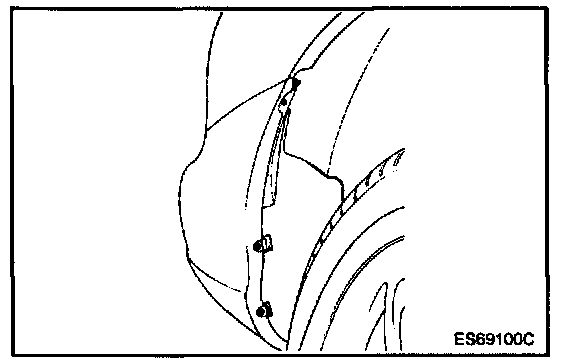 5. Loosen the wheel guard mounting screws and tapping screw in the rear bumper cover to body.