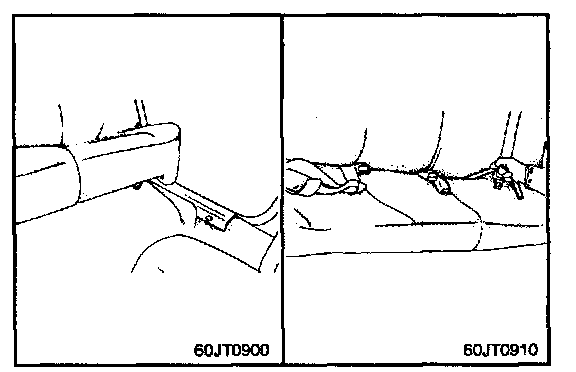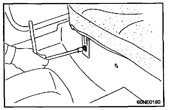 1. Remove the rear seat cushion mounting bolts, from the rear seat cushion.