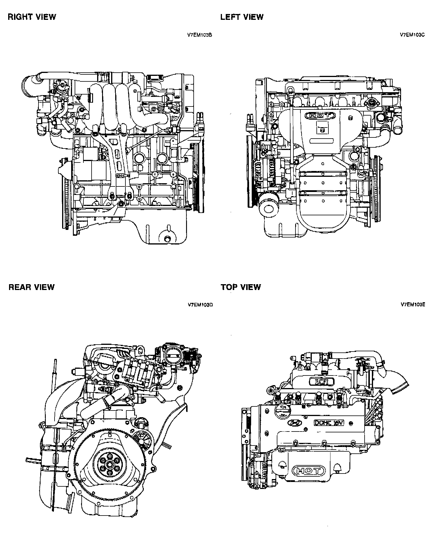 RIGHT, LEFT, REAR, AND TOP VIEWS