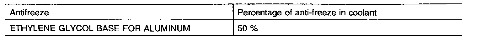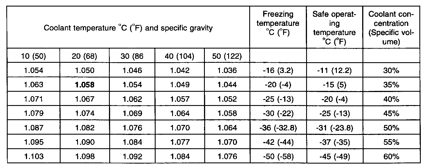 THE TABLE IS APPLICABLE ONLY TO ETHYLENE GLYCOL (ANTIFREEZE) COOLANT OF THE SPECIFIED HIGH QUALITY