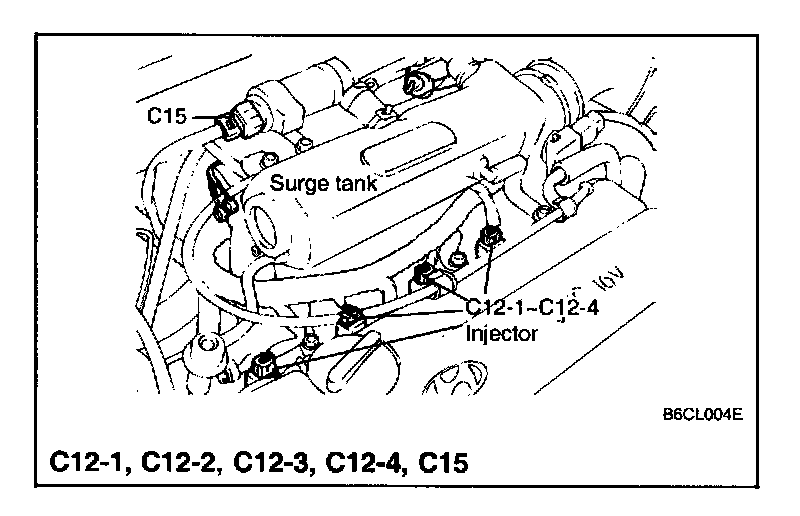 C12-1 Injector #1, C12-2 Injector #2, C12-3 Injector #3, C12-4Injector #4, C15 Idle speed control actuator:
