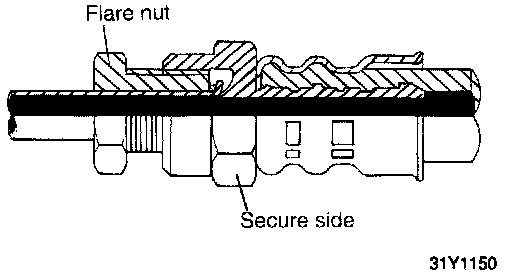 CAUTION When tightening the flare nut, be careful not to bend or twist the line to prevent damage to the fuel pump connection.