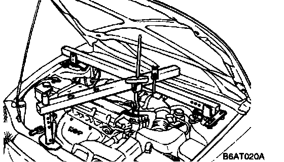 7. Attach an engine support fixture to the engine hooks, and keep just enough so that there is no pressure on the insulators.