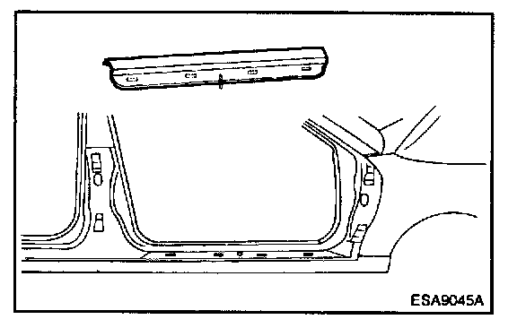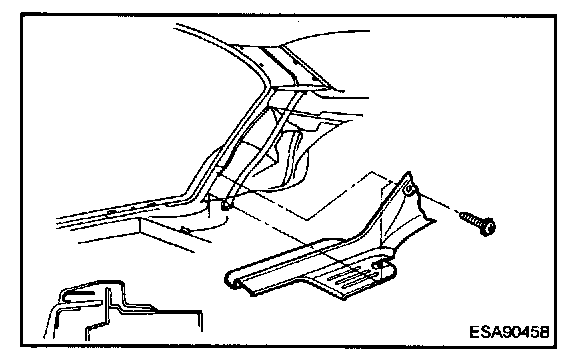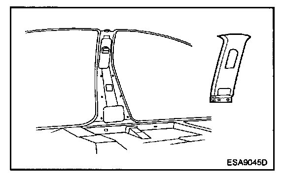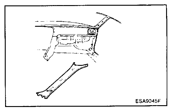3. Remove front seat belt upper anchor and center pillar upper trim.