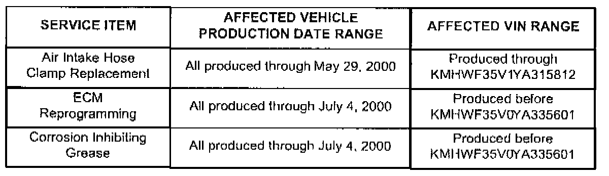 ^ Model: 1999 and 2000 Sonatas equipped with 2.5L V-6 engines