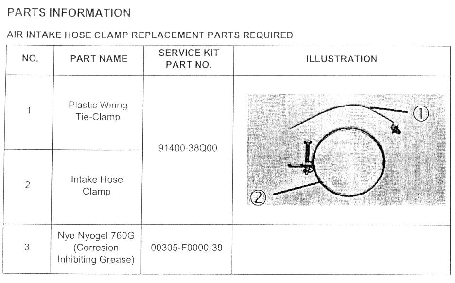 AIR INTAKE HOSE CLAMP REPLACEMENT PARTS REQUIRED