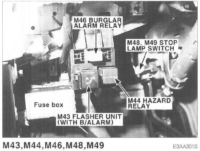 M43 Flasher Unit (With B/Alarm), M44 Hazard Relay, M46 Burglar Alarm Relay, M48, M49 Stop Lamp Switch: