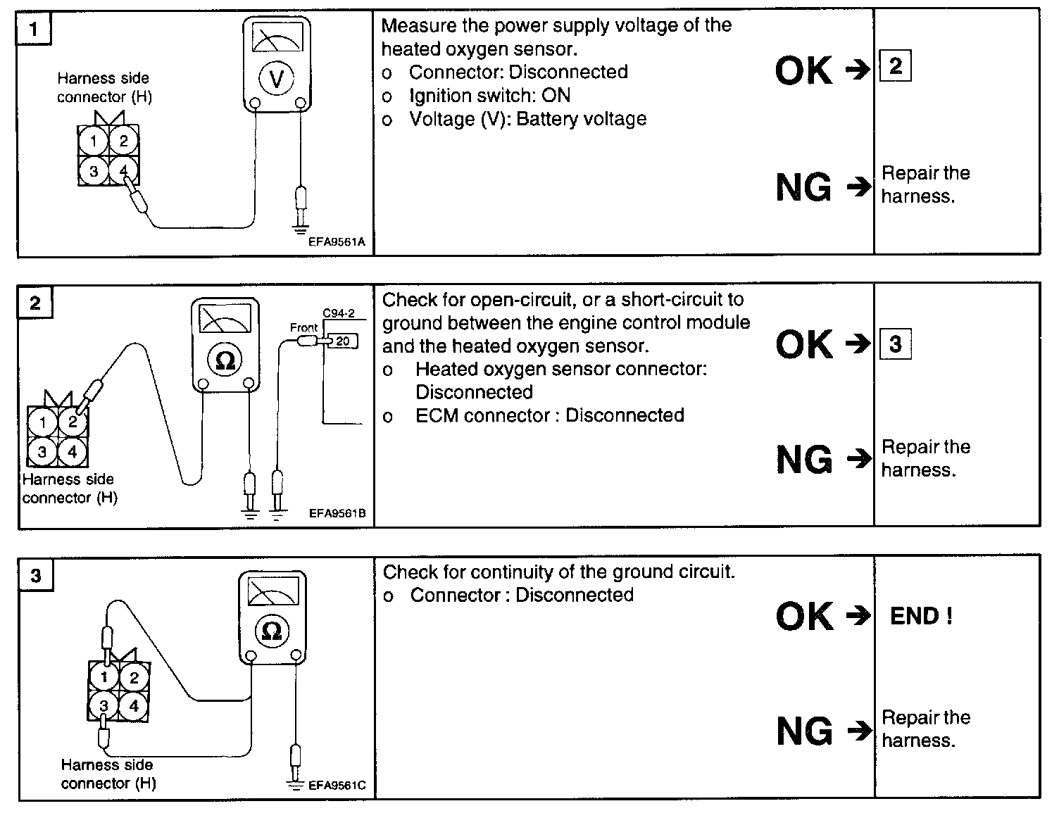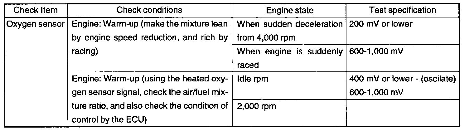 2. If the HO2S check results were normal, but the sensor output voltage is out of specification, check for the following items (related to air fuel ratio control system):