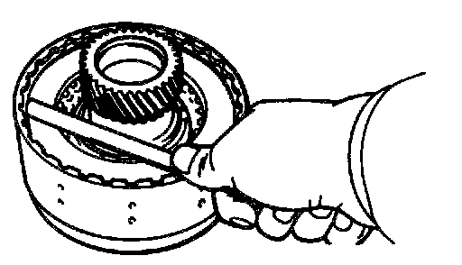 3. Check that the clearance between the snap ring and the clutch reaction plate is within the standard value. When measuring the clearance, press the clutch reaction plate by the force of 5 kg evenly. If not within the standard value, select a snap ring to adjust.