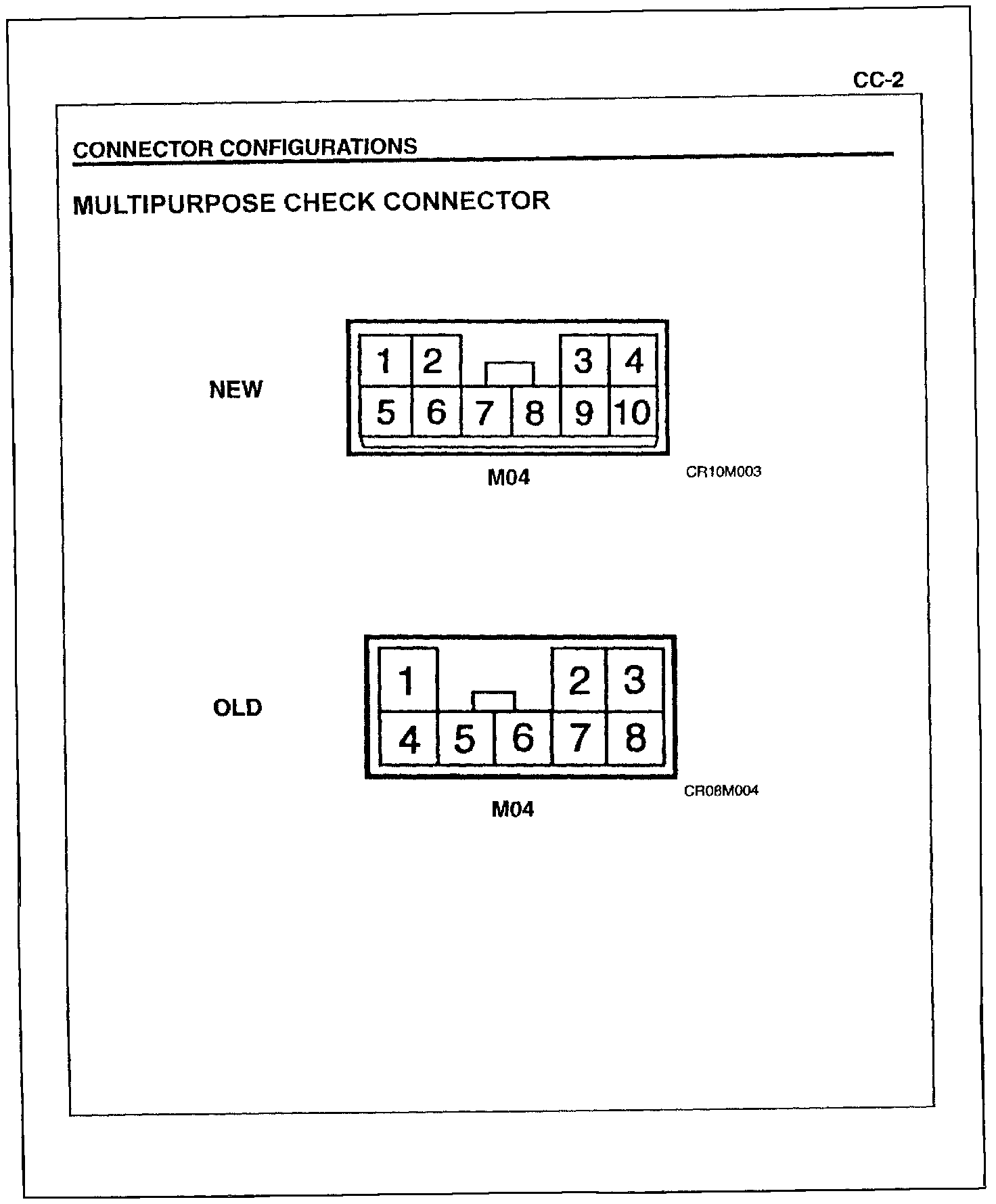 Please refer to illustration of the multipurpose check connector schematic diagram and the new check connector configuration.