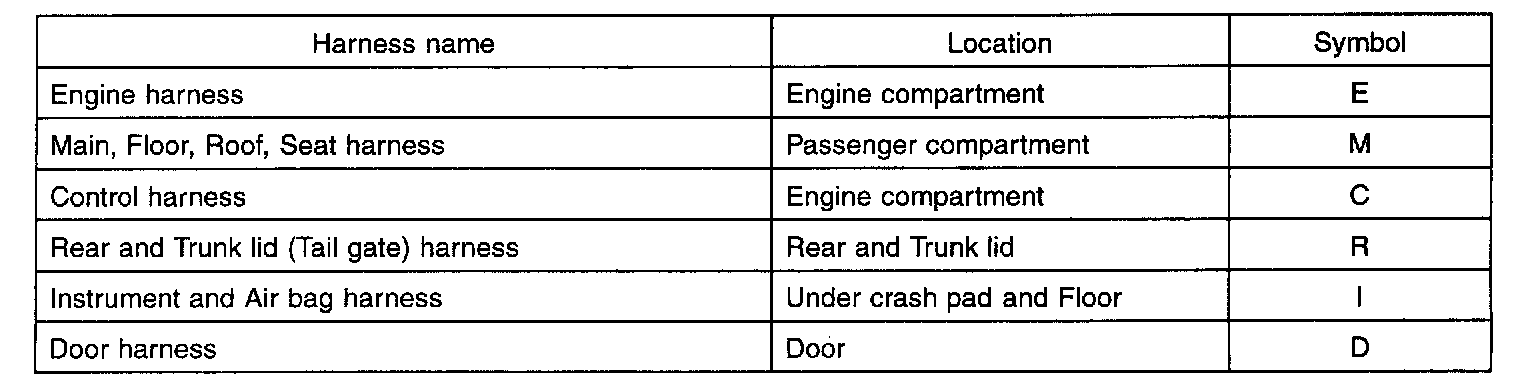 Electrical wiring connectors are classified according to the wiring parts in the Harness Layouts.