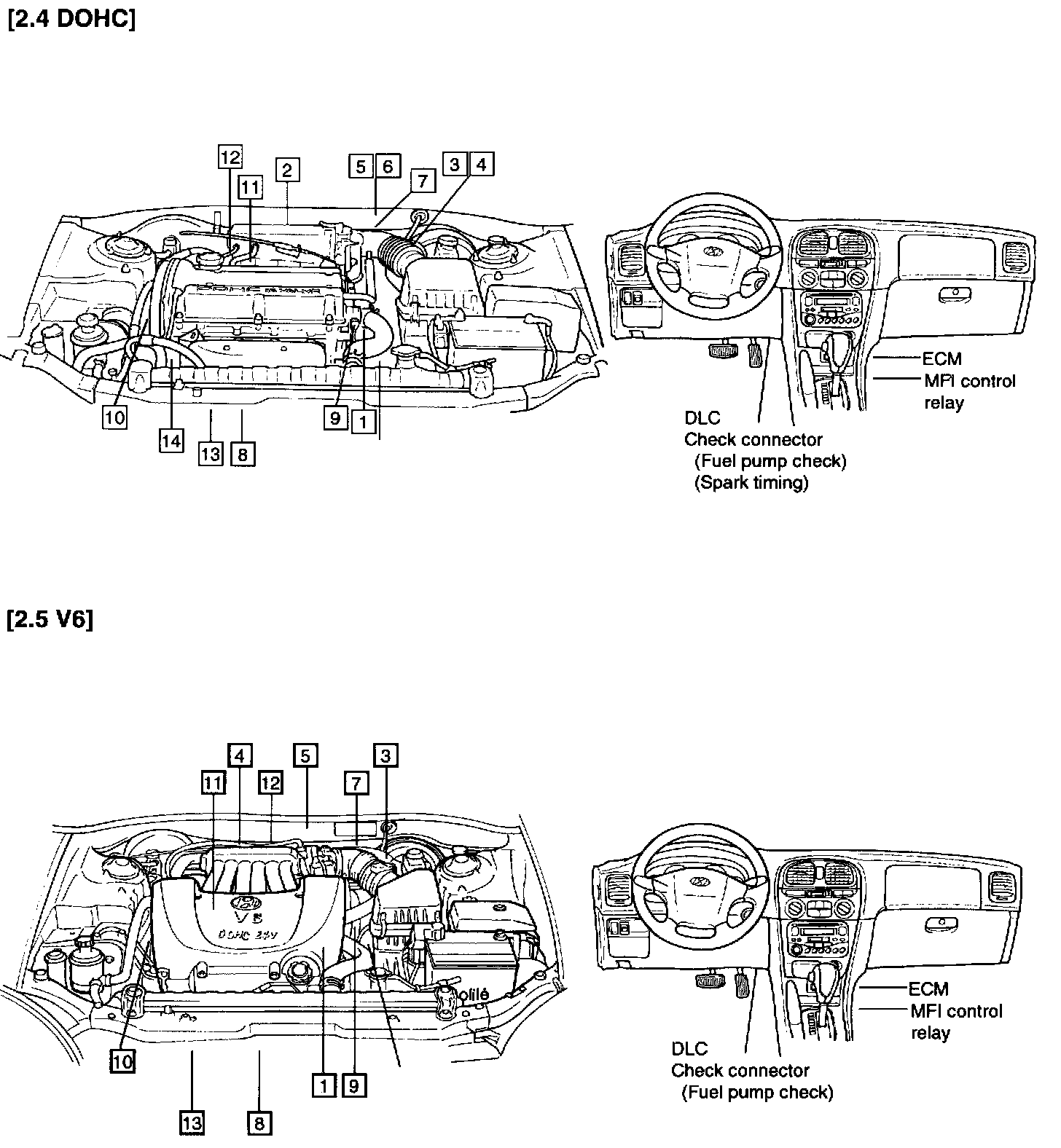 4. Intake air temperature (IAT) sensor (2.4 DOHC: Built in MAF sensor)