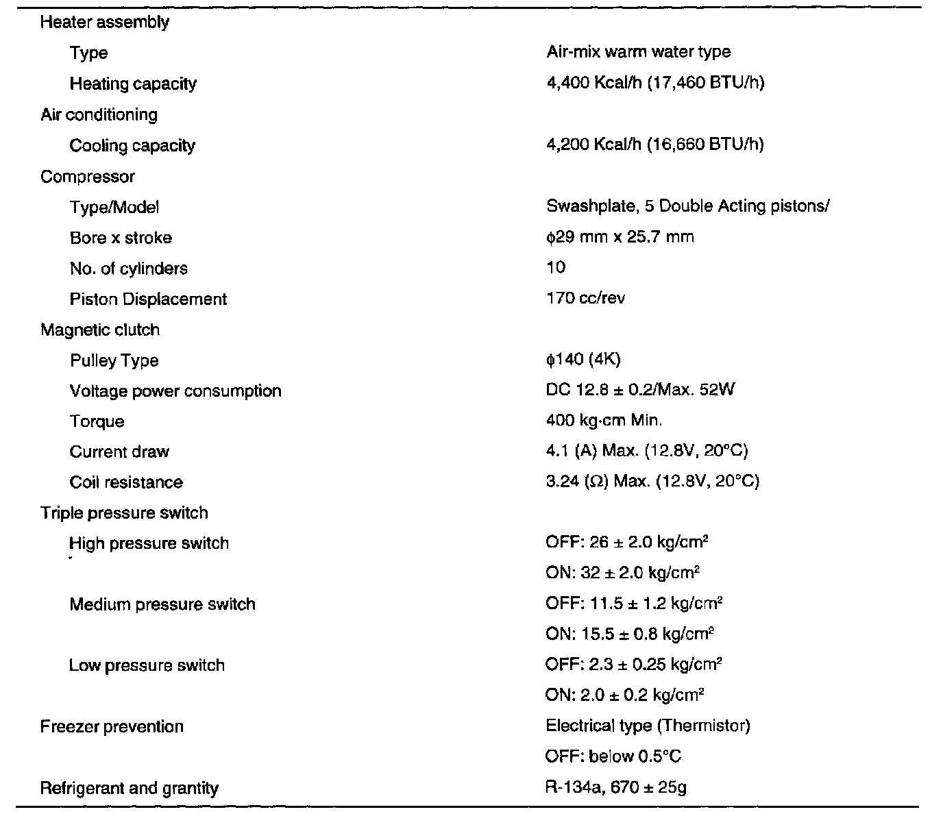 General Specifications (R-134A):