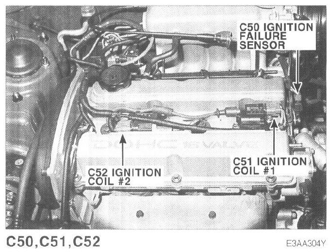 C50 Ignition Failure Sensor, C51, C52 Ignition Coil (#1 and #2):