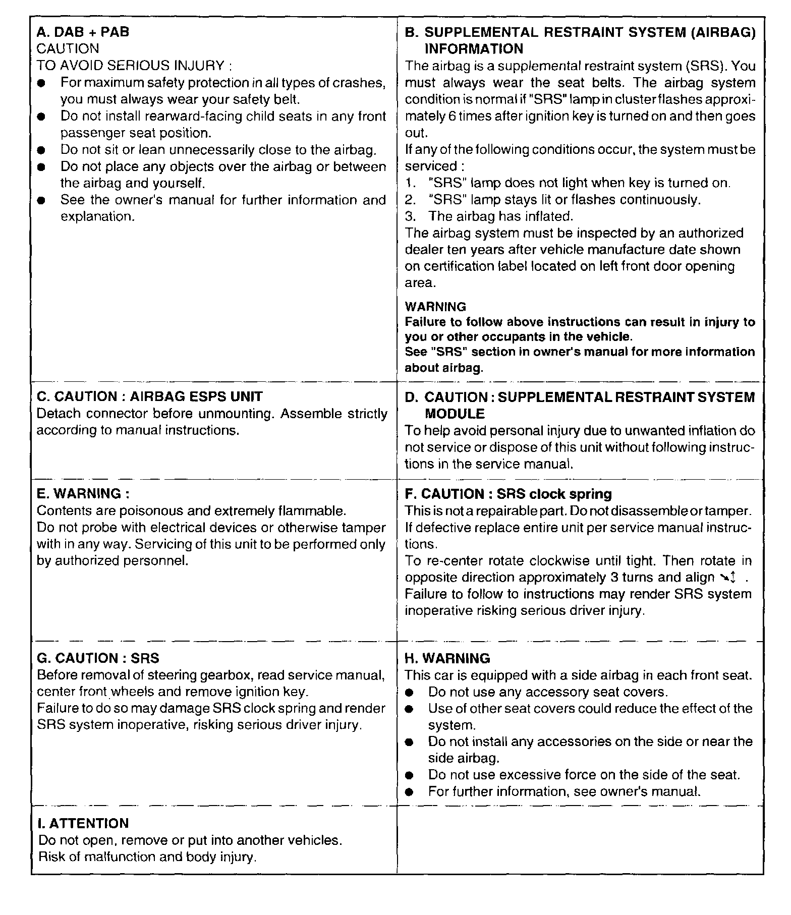 A number of caution labels relating to the SRS are found in the vehicle, as shown in the illustration. Follow label instructions when servicing SRS.