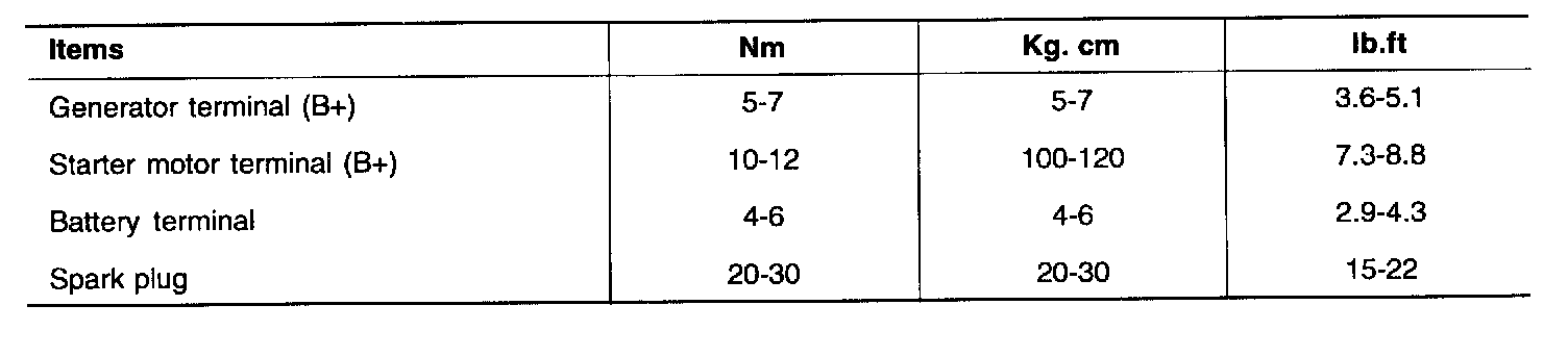 Starting and Charging: Specifications