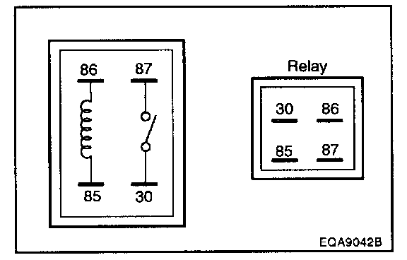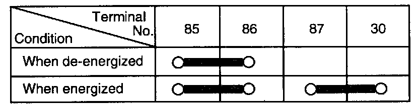 Remove the starter relay and check continuity between the terminals. If the continuity is not as specified, replace the relay.