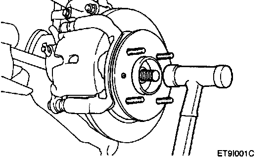 5. Tighten the hub to the knuckle to 200 Nm (2000 kg-cm, 148 ft. lbs.) with the special tool.