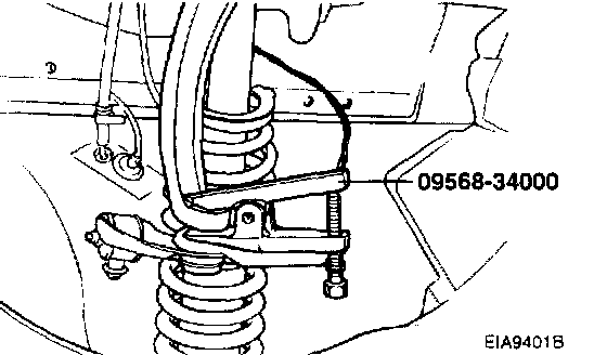 10. Using the special tool, disconnect the upper arm from the knuckle.
