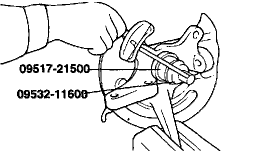 5. Using the special tool, remove the wheel bearing outer race from the knuckle.