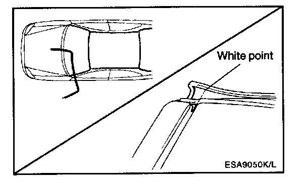 10. Align marks of the windshield glass molding (white point in the glass molding) and inside roof molding.