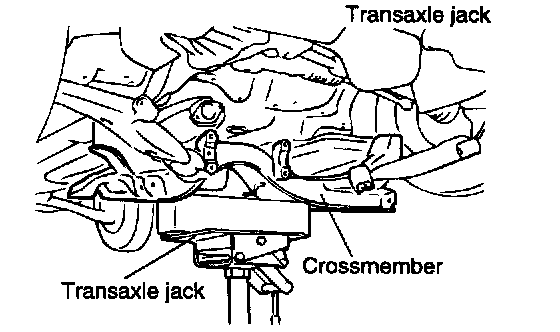 1. Install the crossmember while supporting it with a transaxle jack.