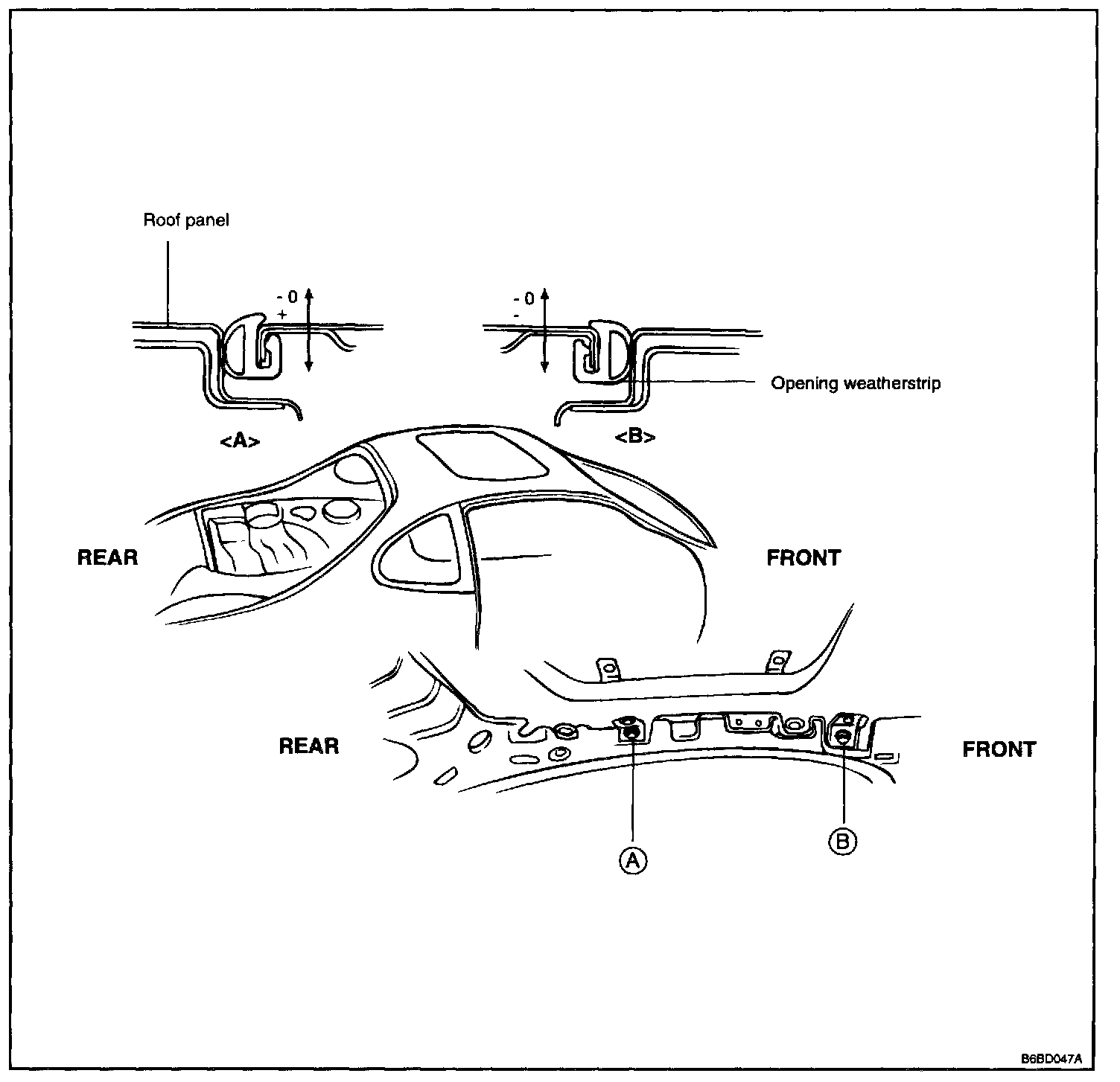 ADJUSTMENTSet the gap by moving the sunroof adjustor nut A or B to clockwise or counter clockwise direction.