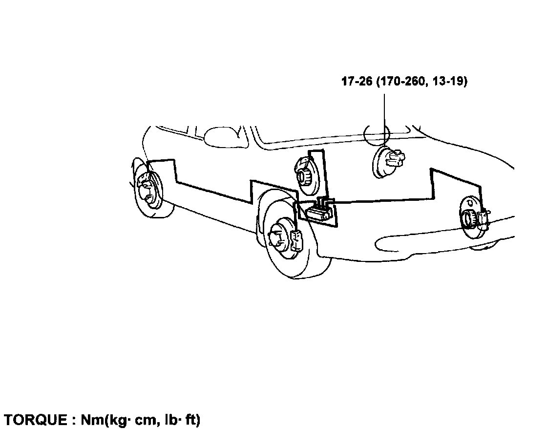 Brake tube nut: 13 - 17 Nm (130 - 170 kg.cm, 9 - 12 ft. lbs.)