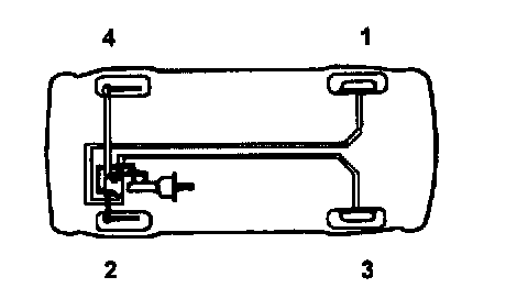 6. Repeat the step 5. until there are no more bubbles in the fluid for each wheel in the sequence shown in the illustration.