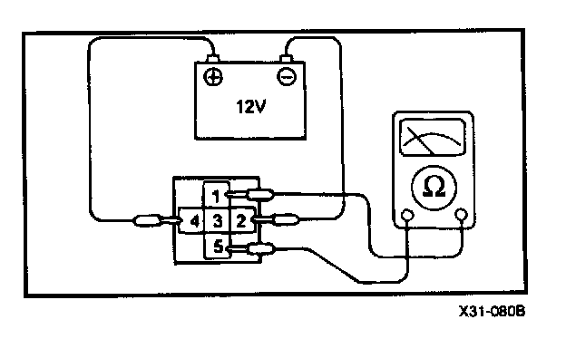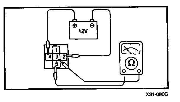 1. Check continuity of relay contacts between terminal 4 (+) and 2 (-)