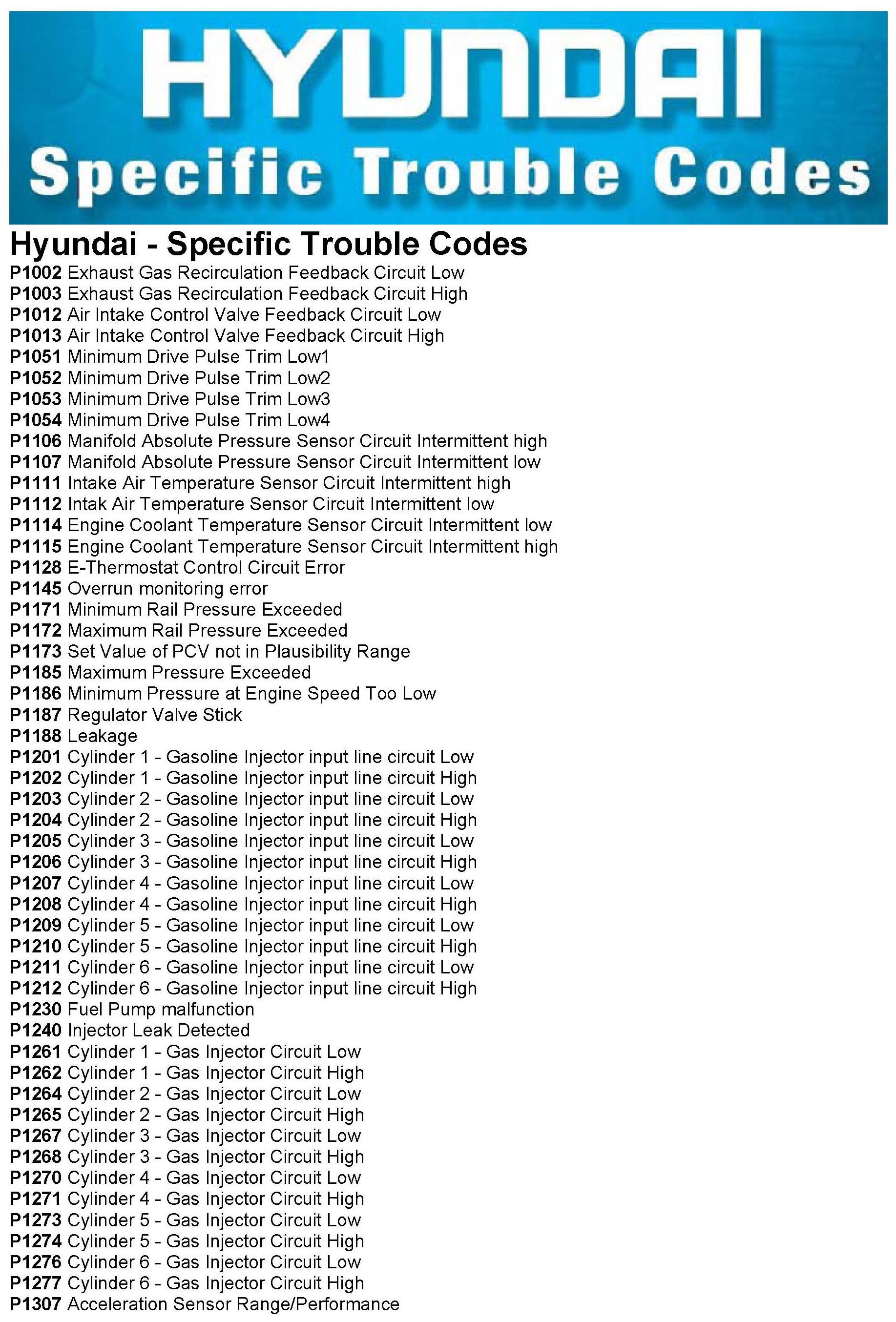 Specific Trouble Codes
