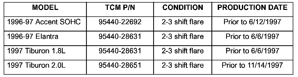 ^ Accelerate the vehicle through several 1-2-3-4 upshifts at small throttle openings (approximately 25-30% TPS) until shift flare or shift shudder no longer occurs.
