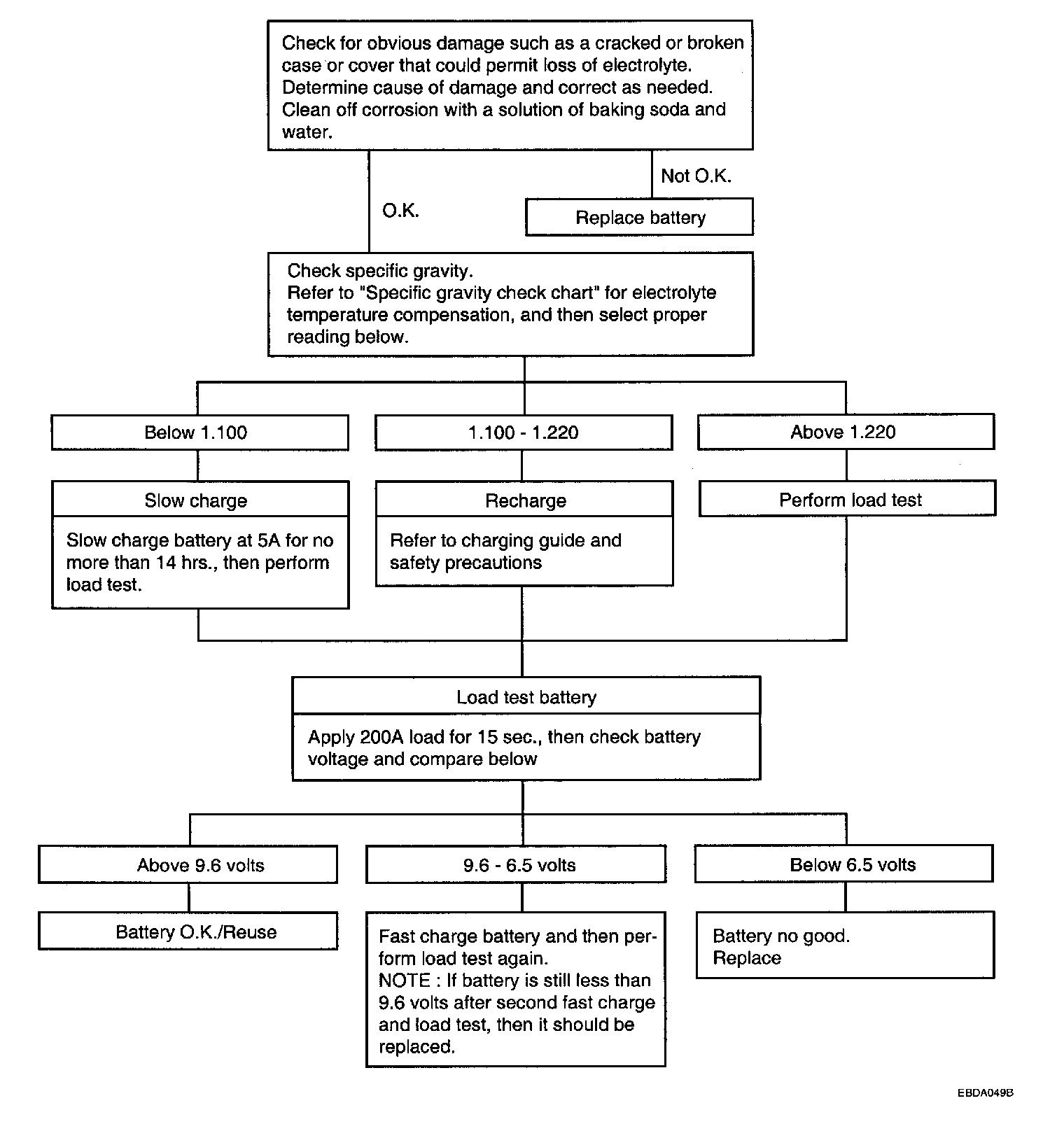 CAUTION: A difference of 50 points (0.050) or more between one or more cells indicates a defective battery. It should be replaced.