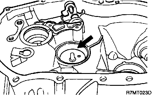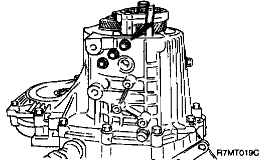 CAUTION: If you remove the spring pin of 1st-2nd shift fork in neutral position, spring pin hits the teeth of 2nd gear. So teeth of 2nd gear are damaged by spring pin.