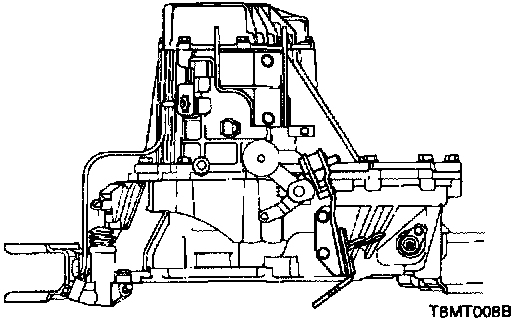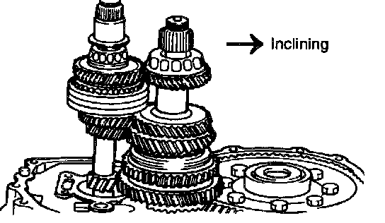 23. Pull out the input shaft from the clutch housing inclining the output shaft. Next put out the output shaft. And then, remove the poppet ball (bearing type) from the control shaft (for Accent: 2000MY ->).