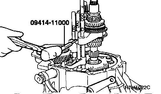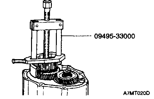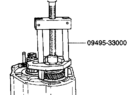 10. Remove the fifth speed gear on the output shaft using the special tool (09455-21000).