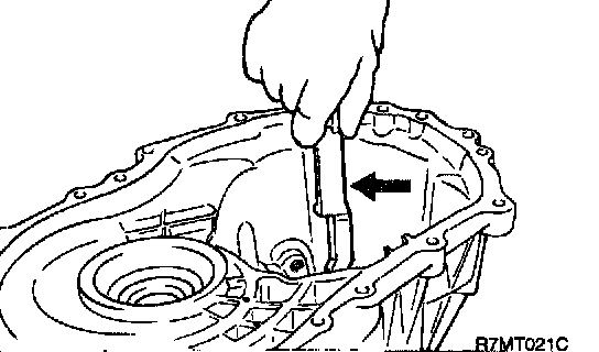 13. Remove the transaxle case fixing bolts in the clutch housing and then remove the transaxle case.