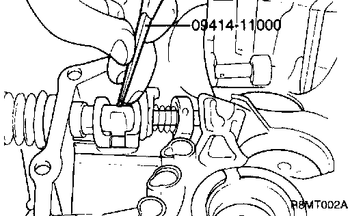 2) Using the special tool (09414-11000), remove the lock pin.