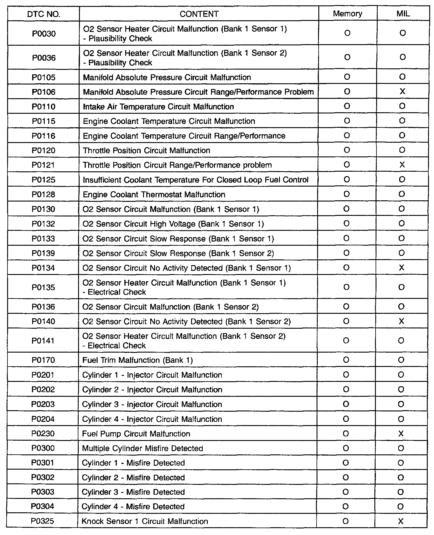 P0030 - P0325: