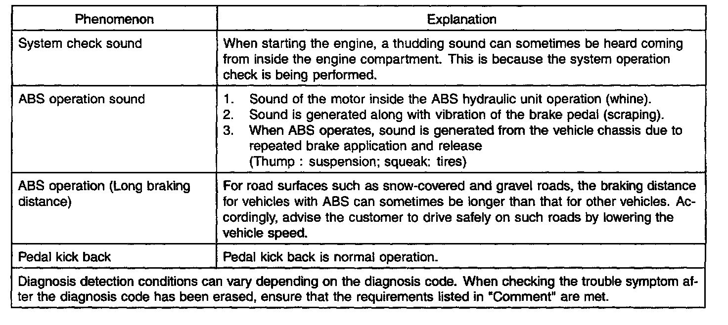 The phenomena listed in the following table are not abnormal.