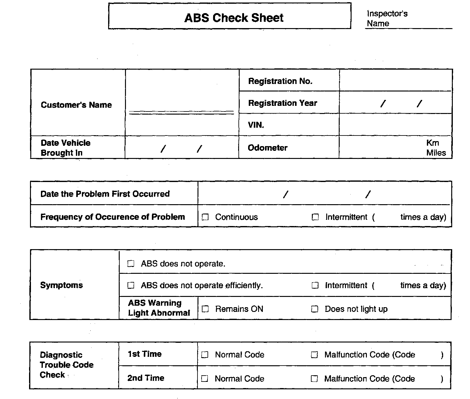 ABS CHECK SHEET