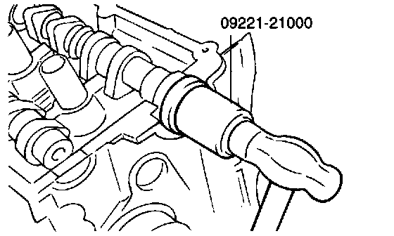 6. Using the special tool, camshaft oil seal installer (09221-21000), press the camshaft oil seal. Be sure to apply engine oil to the oil seal lips. Insert the oil seal along the camshaft front end and install by driving the installer with a hammer to 8.5 mm (0.3346 inch) depth from the front end face of the camshaft.