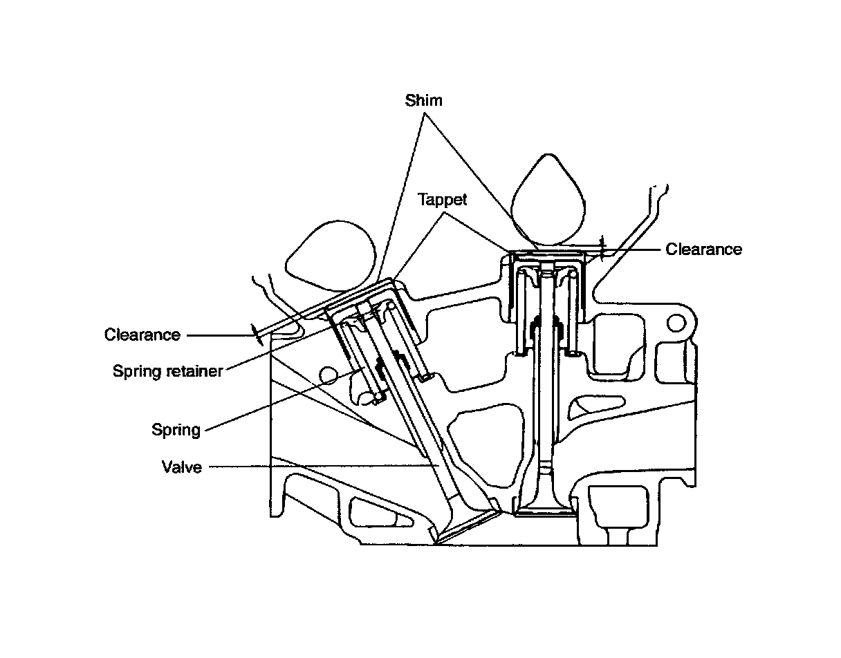 - sing a thickness gauge, measure the clearance between the tappet shim and the base circle of camshaft.