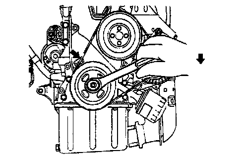 4. Loosen the timing belt tensioner pulley and temporarily secure it.