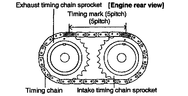 2. Align the camshaft timing chain with the intake timing chain sprocket and exhaust timing chain sprocket as shown.