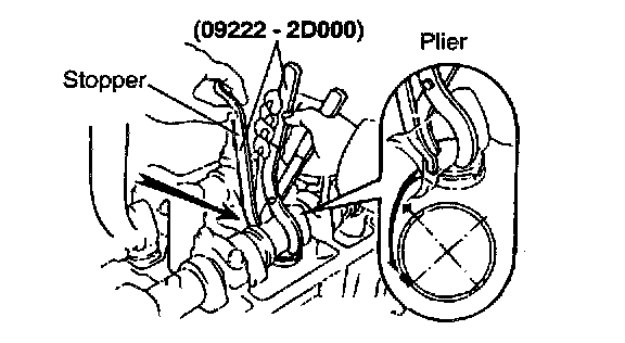 h. Using the special tool (09220-2D000), press down the valve lifter and remove the stopper;