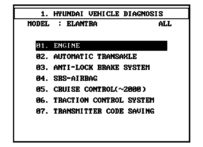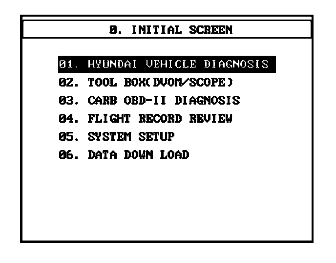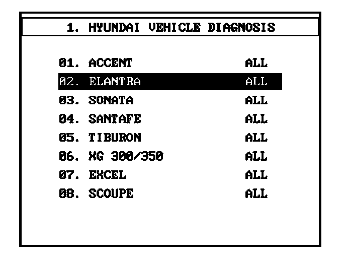 1. Using the Hi-Scan Pro with the SOL System Card Installed, choose the HyundaiDiagnostic Menu.
