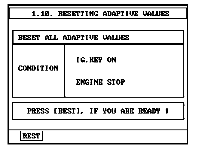 6. With the key in the "ON" position and the engine not running, press the F1 button to reset the adaptation values.