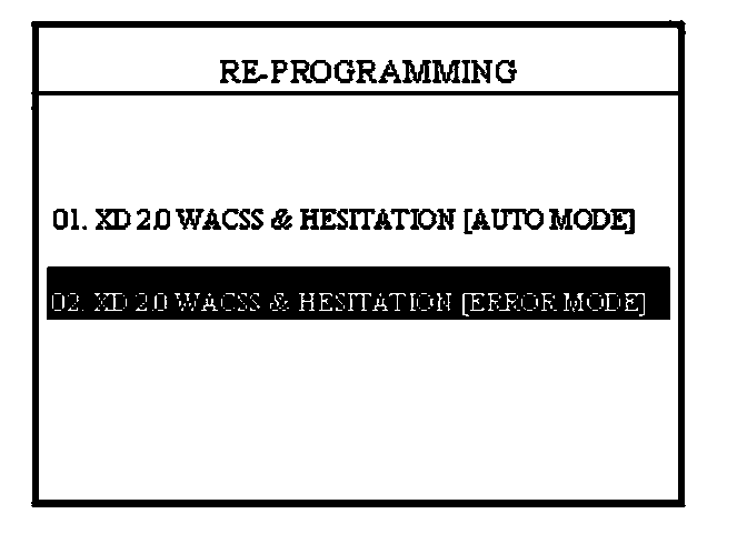 In the event that option "01. XD 2.0 WACSS & HESITATION [AUTO MODE]" fails to download the new ECM program, option "02. XD 2.0 WACSS & HESITATION [ERROR MODE]" must be used.