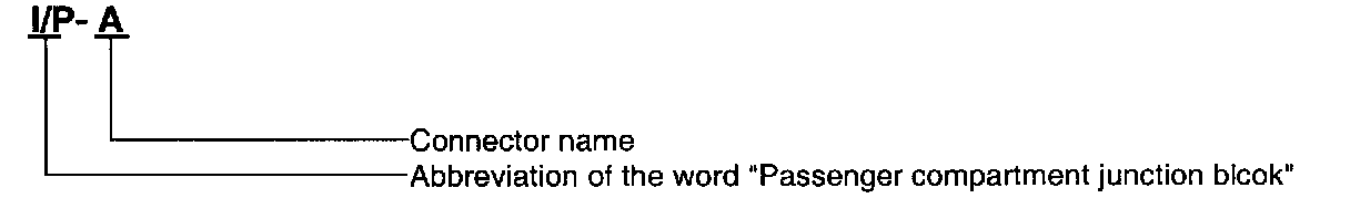 A junction block identification symbol consists of a wiring harness location classification symbol corresponding to a wiring harness location and number corresponding to the connector in the junction block.